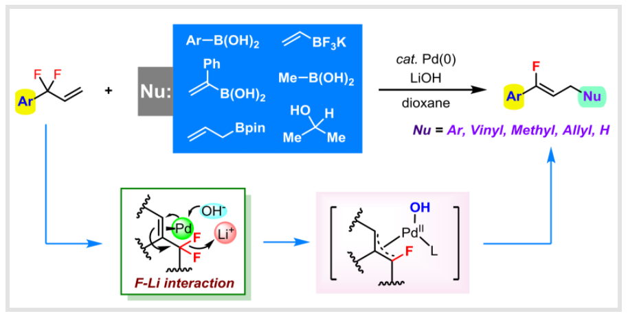 Tang, Lu-ning.; Liu, Guo-ying.; Li, Jun-hua and Chen, Ming.* Palladium-Catalyzed Diversified Synthesis of mono-Fluorinated Alkenes from Allylic gem-Difluorides through Pd-OH intermediate. Org. Lett.2023, 25, 9064-9069.