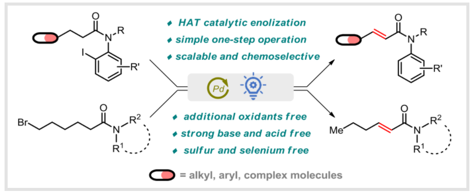 Yang, Sen.; Fan, Huike.; Xie, Licheng.; Dong, Guangbin.; and Chen, Ming.*Photo-induced Desaturation of Amides by Palladium Catalysis.Org. Lett.2022, 24, 6460-6465.
