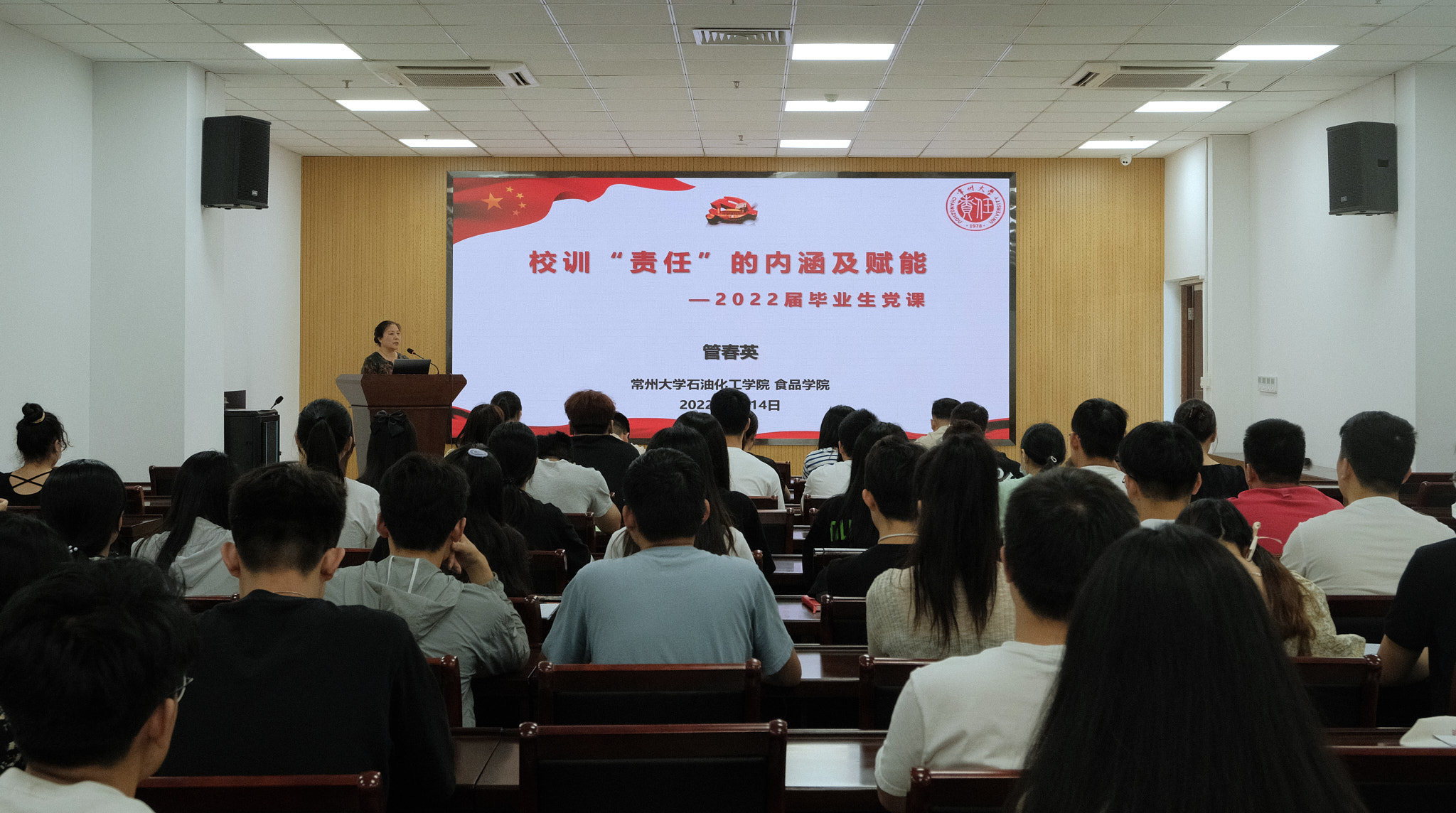 6月14日,石油化工學(xué)院開展2022屆畢業(yè)生黨員“畢業(yè)一課”活動(dòng),學(xué)院黨委書記管春英以“校訓(xùn)‘責(zé)任’的內(nèi)涵與賦能”為主題進(jìn)行授課,畢業(yè)生黨員與學(xué)院全體輔導(dǎo)員聆聽黨課。