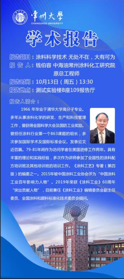 | 【學(xué)術(shù)報(bào)告】10月13日學(xué)術(shù)報(bào)告——涂料科學(xué)技術(shù) 無(wú)處不在 大有可為 |